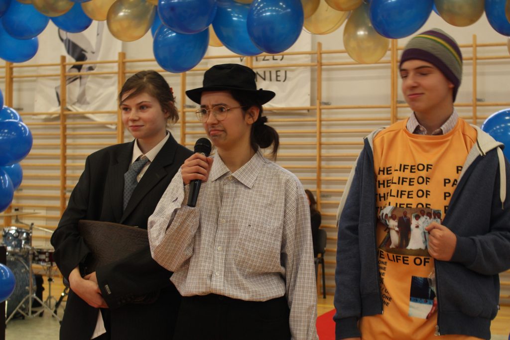 Po części oficjalnej odbyła się część artystyczna, która została przygotowana przez klasę 3e pod kierunkiem prof. Justyny Witek. Uczniowie przygotowali dla swoich Profesorów galę rozdania Bieganów. Czerwony dywan, nagrody, wesołe wiersze i piosenki wzbudziły we wszystkich wiele pozytywnych emocji