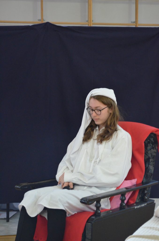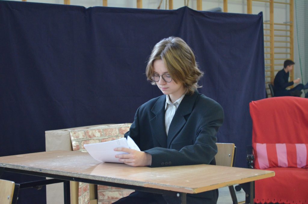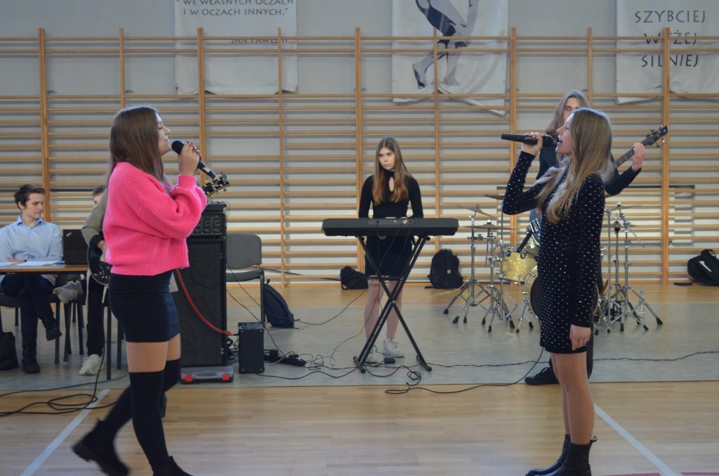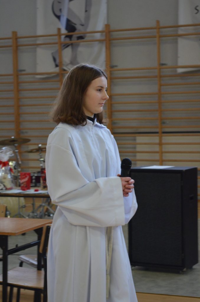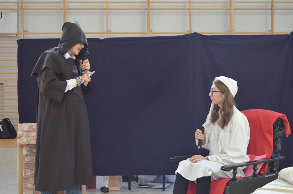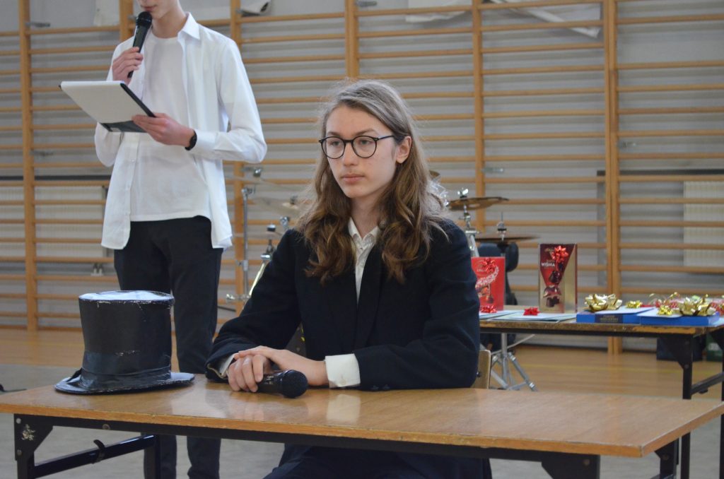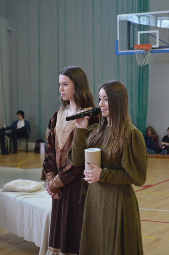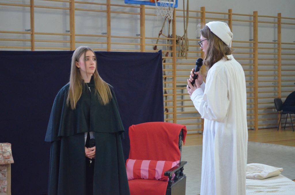 O godz. 11 wszyscy zgromadzili się na hali, by obejrzeć bożonarodzeniowe przedstawienie inspirowane utworem Karola Dickensa „Opowieść wigilijna”, przygotowane przez uczniów klasy I e, I c i IV a. Młodzi aktorzy dzięki wspaniałej grze, kostiumom i scenografii pokazali swoje artystyczne talenty i wprowadzili nas duchowo w klimat świąt.